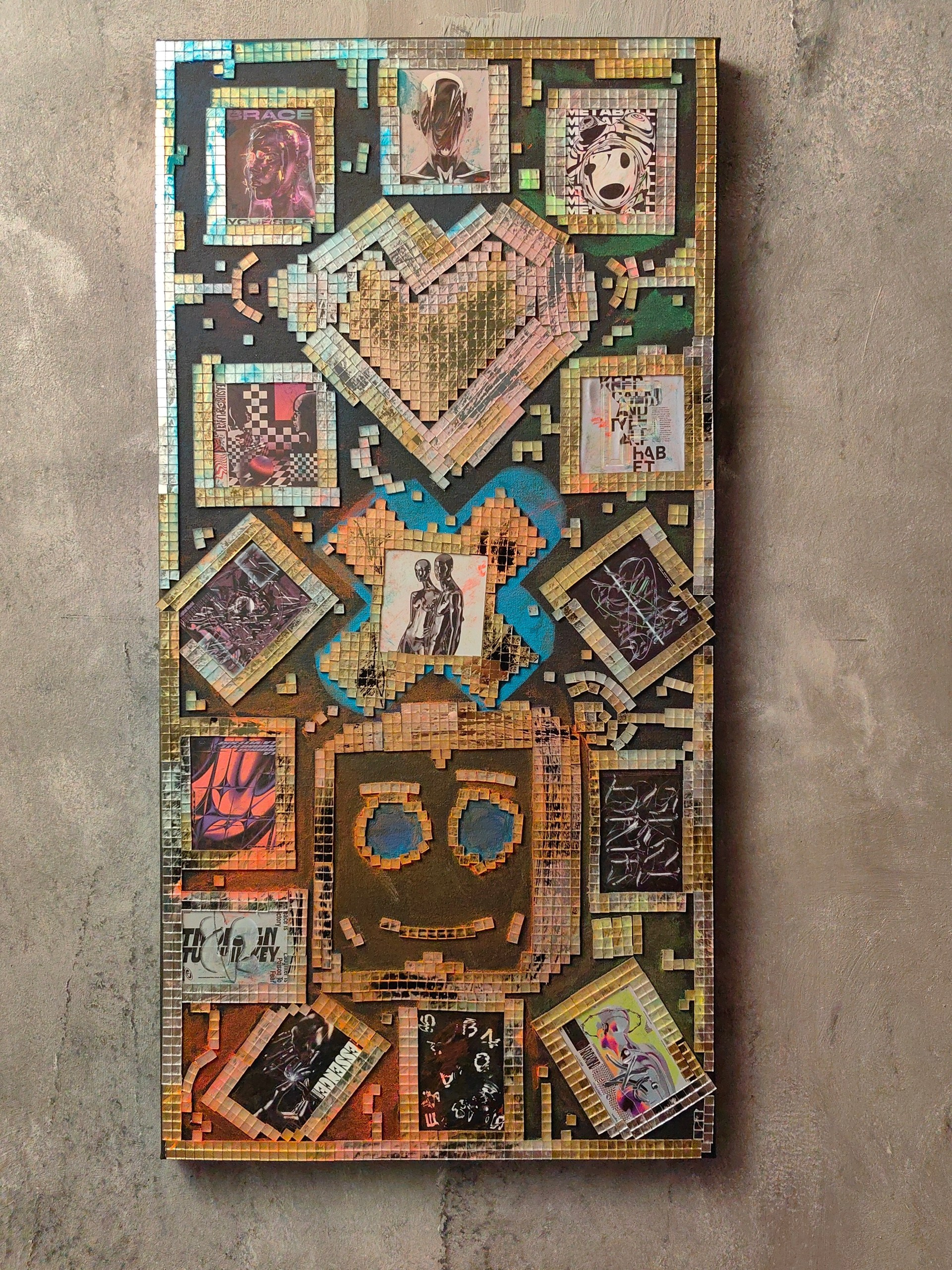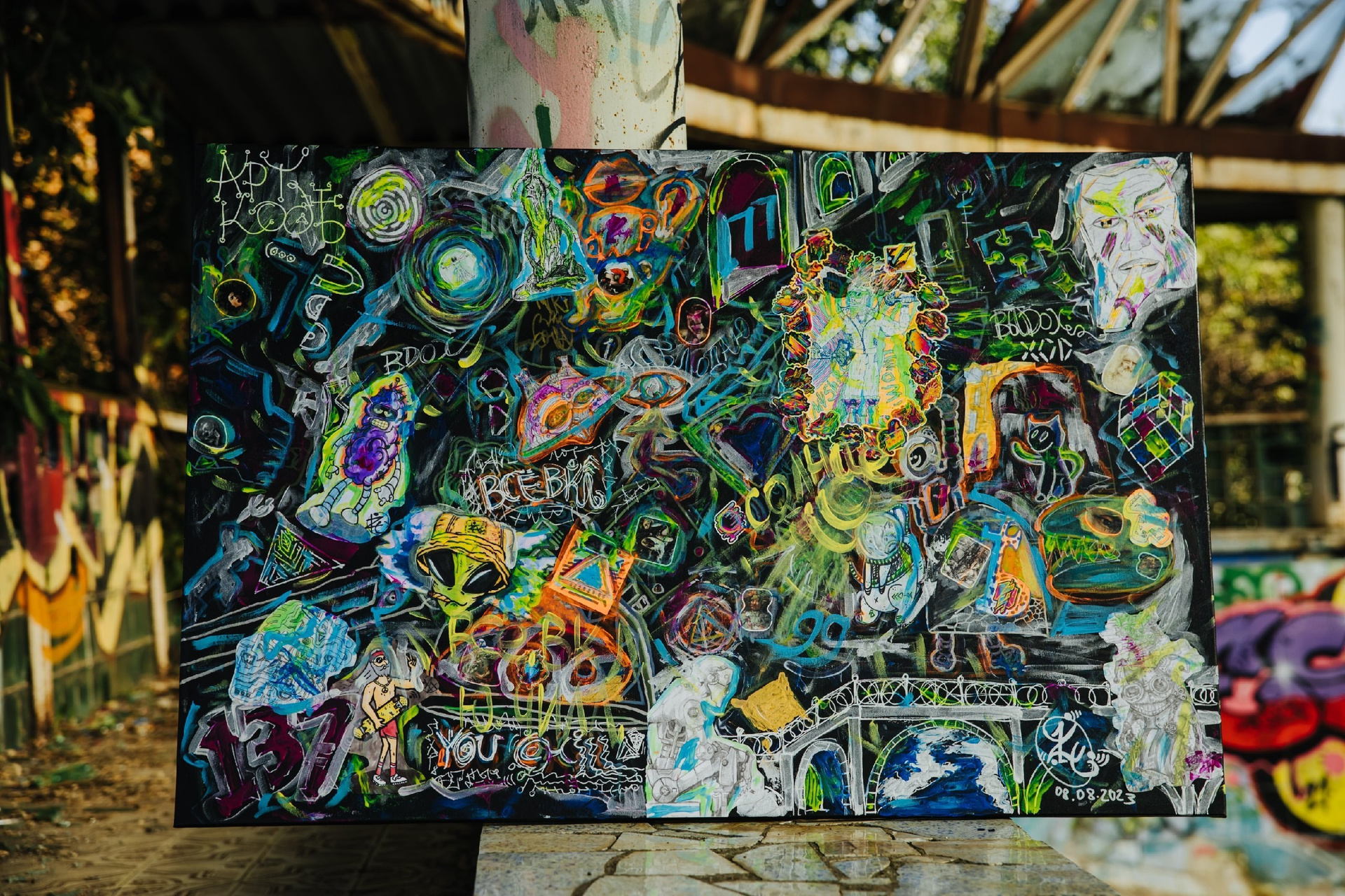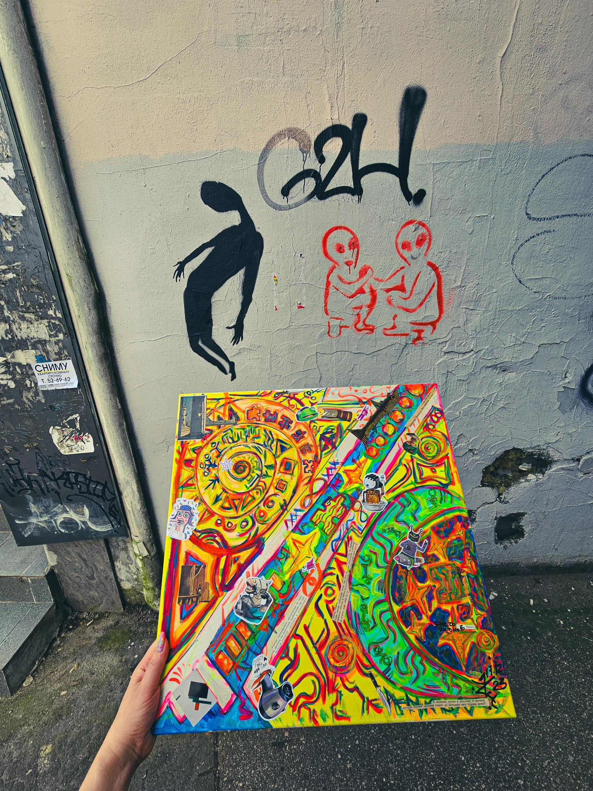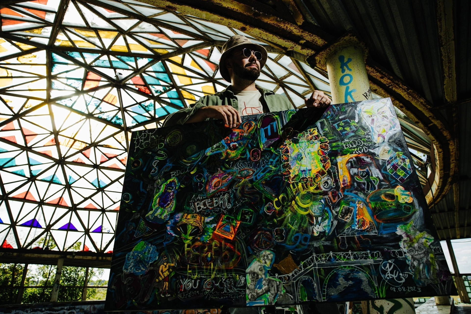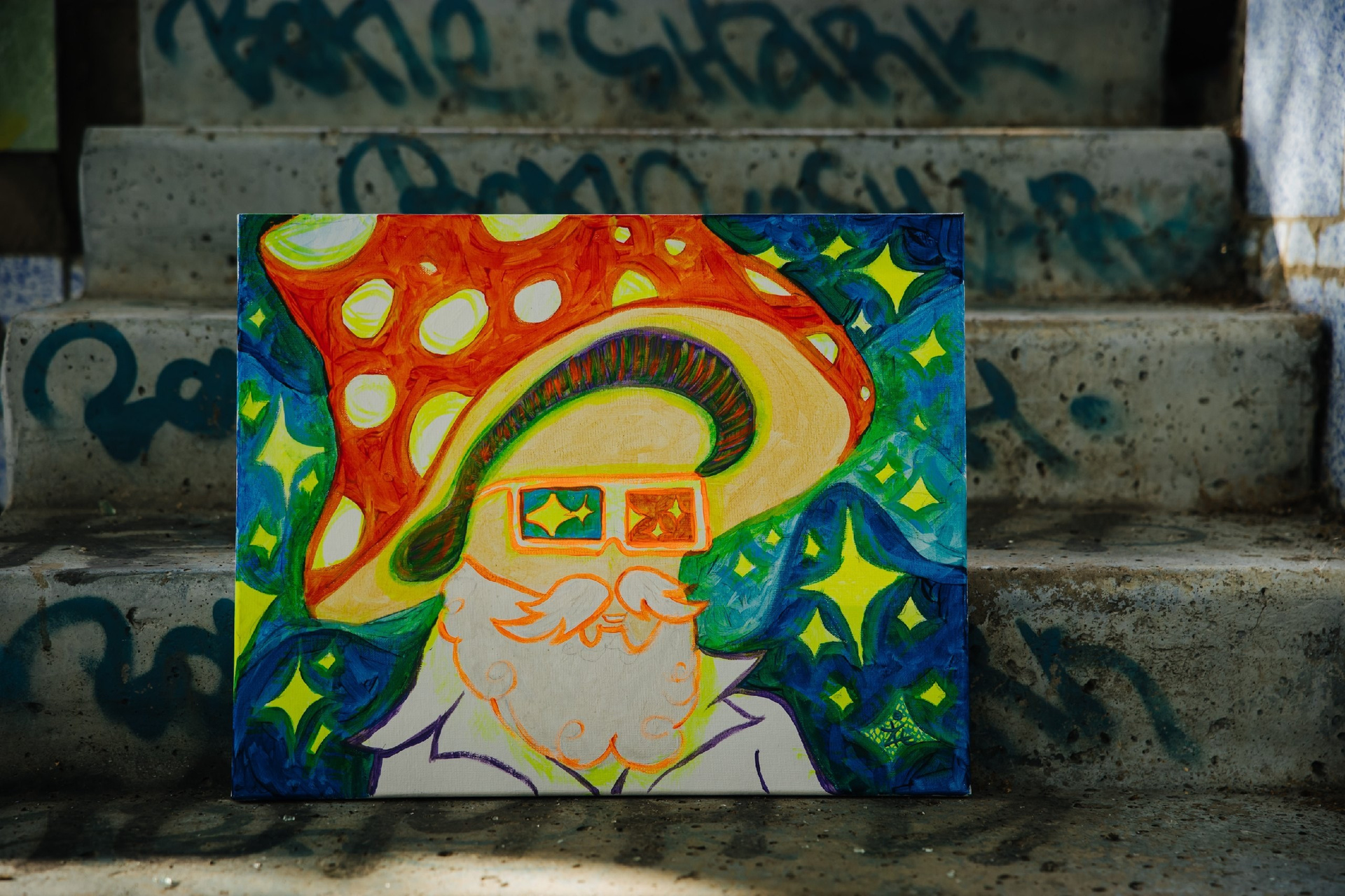 Северное солнце триптих, холст, акрил, подсветка. Картина рельефная состоит из трех самобытных частей: центр «Танцы» D40 см, круглый холст со светодиодной подсветкой по торцу, освещает боковые части слева - квадрат «Озеро» 50х50 см , справа - «Закат» 50х50 с